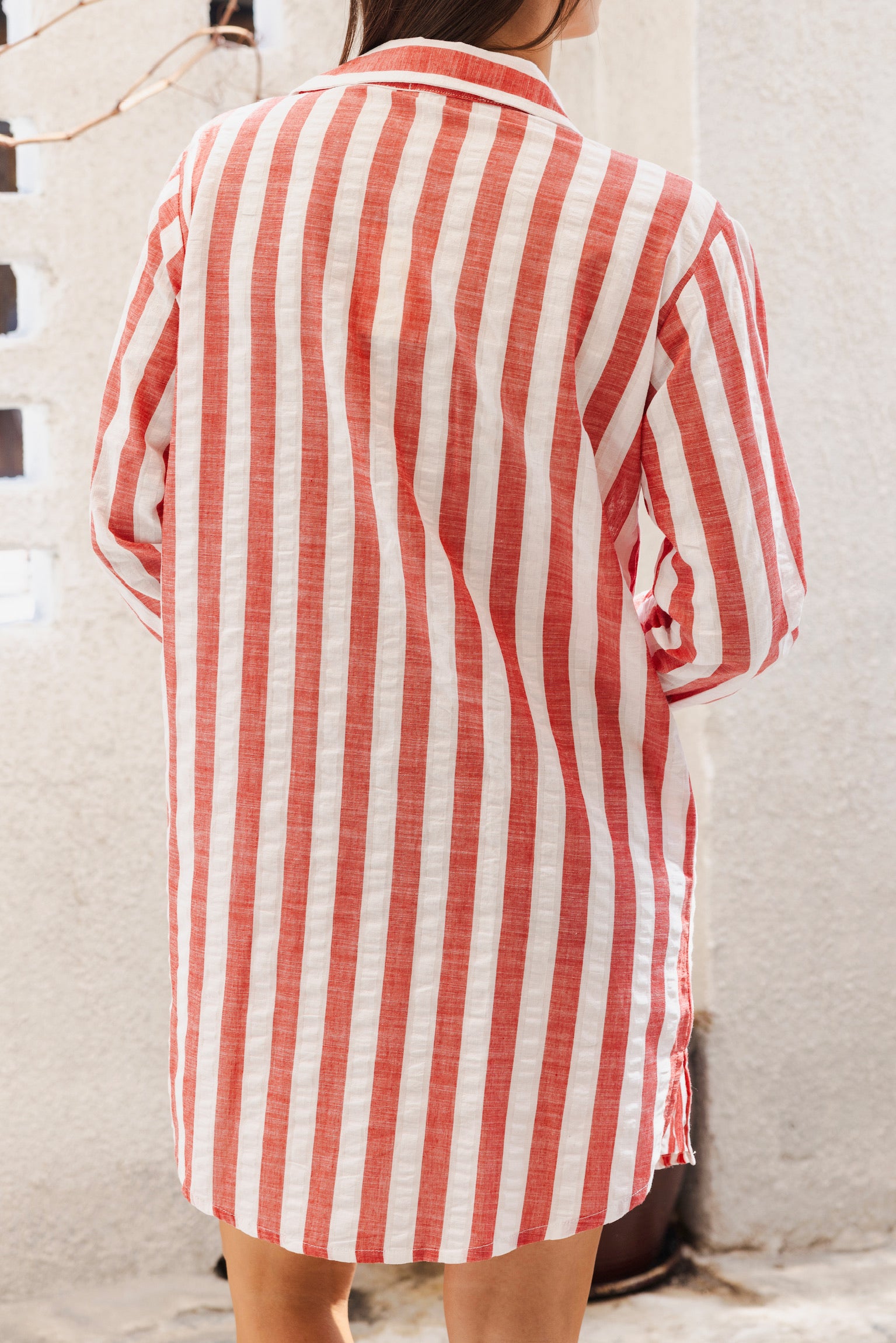 A timeless shirt dress that's perfect for beach holidays. The classic stripe pattern brings a fresh, nautical charm while the relaxed silhouette keeps you cool and comfortable by the pool or seaside.