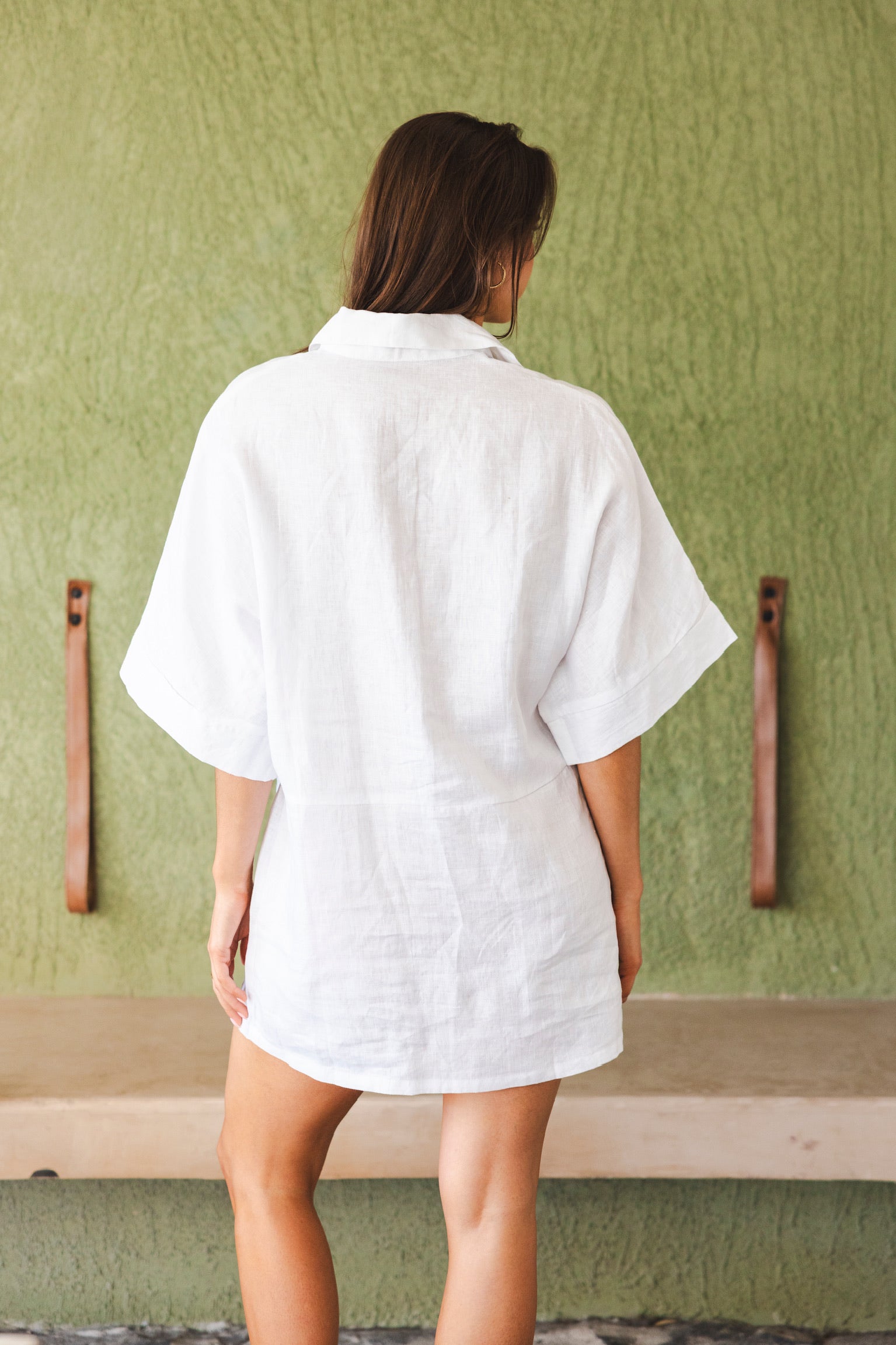Embrace effortless coastal style with the Harper dress, your perfect beach-to-lunch companion. Designed to slip seamlessly over your bathers, this relaxed silhouette features distinctive wide sleeves and a classic collar with button-through detail to the waist. Available in crisp white or playful green gingham, it's the ultimate throw-on piece that delivers comfort without compromising on style.