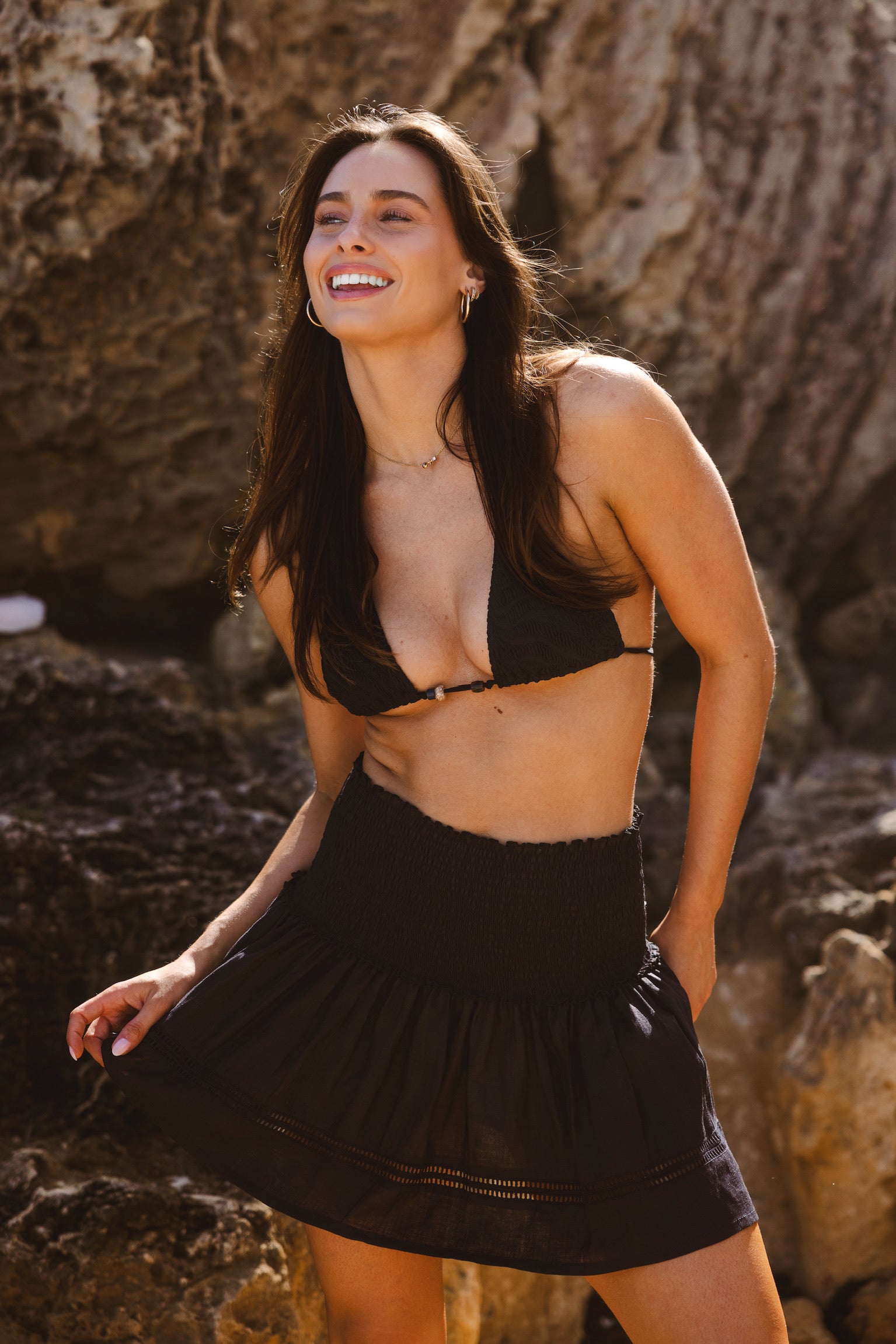 The ultimate summer essential that effortlessly transitions from beach to brunch. This tiered mini features a comfortable smocked waistband for the perfect fit every time. Style it with your favourite bikini top for seaside days or pair it with a cute tank for effortless evening looks. Versatile, playful, and endlessly wearable.